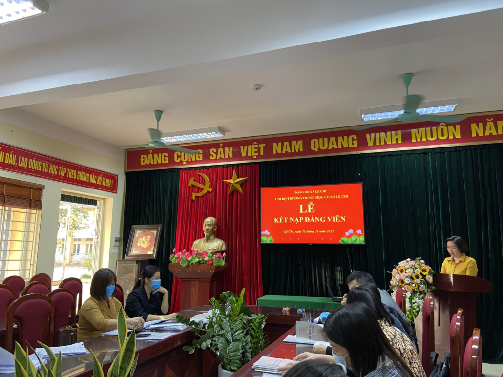 Trong buổi lễ kết nạp, đồng chí Đặng Thị Thanh Hương – Bí thư Chi bộ - Hiệu trưởng nhà trường đã đọc và trao quyết định kết nạp Đảng cho hai đồng chí.