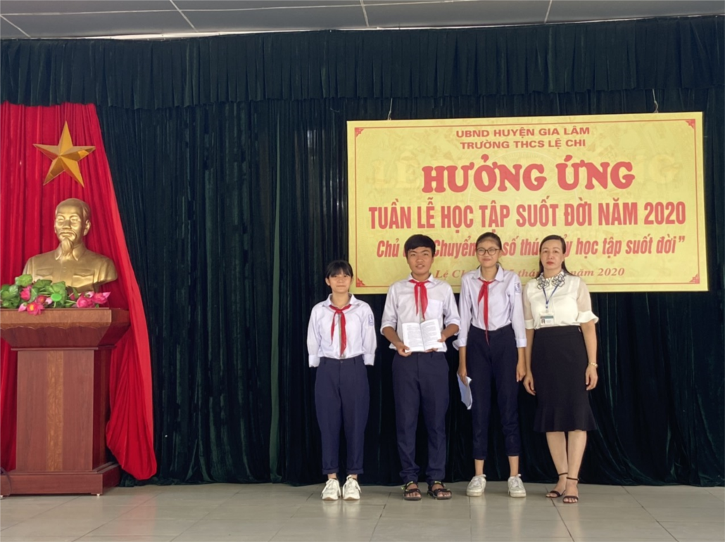 Như Lê Nin đã nói “không có sách thì không có tri thức”. Trong đời sống tinh thần của mỗi chúng ta, sách đóng vai trò quan trọng, là chìa khóa vạn năng mở cách cửa lâu đài trí tuệ và tâm hồn con người. Sách thắp sáng trong ta nguồn tri thức vô biên, dạy cho chúng ta biết sống có ích và sống có lý tưởng. Hiểu được giá trị to lớn của những cuốn sách nên thế hệ học sinh Trường THCS Lệ Chi hôm nay đang cố gắng rèn luyện cho mình thói quên đọc sách hàng ngày, các em tìm được những kiến thức bổ ích và lý thú từ những trang sách để góp phần nâng cao kiến thức của mình. Các em luôn hiểu được dù xã hội ngày càng phát triển cao hơn, con người có thể tìm kiếm, khai thác thông tin, trong thư viên điện tử hay qua mạng internet thì sách vẫn là nguồn sống quý giá nhất mà không có món ăn tinh thần nào có thể so sánh được. Để lan tỏa được văn hóa đọc trong nhà trường Cô giáo Đặng Thị Thanh Hương - Bí thư chi bộ - Hiệu trưởng nhà trường luôn quan tâm động viên đến các phong trào của nhà trường đặc biệt là truyền thụ cho thế hệ học sinh tình yêu đọc sách!