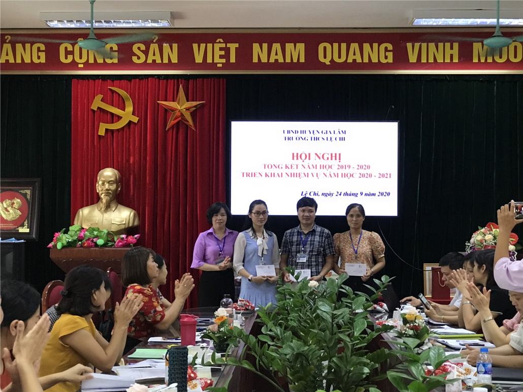5. Các đồng chí trong BGH trao thưởng cho các đồng chí GV có lớp đạt danh hiệu “Lớp tiên tiến”.