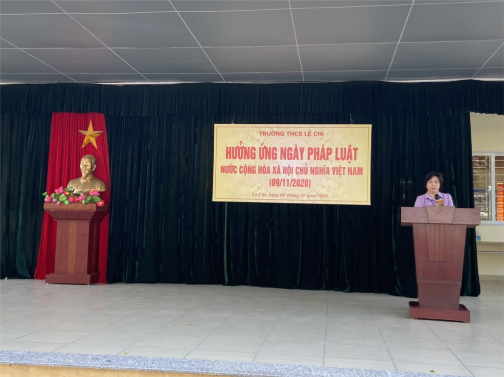 Thực hiện công văn số 3442/SGS&ĐT-VP ngày 02/10/2020 của Sở giáo dục và Đào tạo Hà Nội; Thực hiện công văn số 300/GD&ĐT huyện Gia Lâm về việc tổ chức thực hiện "Ngày pháp luật nước Cộng hòa xã hội chủ nghĩa Việt Nam"; trong ngành Giáo dục và Đào tạo năm 2020, sáng ngày 09/11/2020 trường THCS Lệ Chi đã tổ chức Hưởng ứng ngày pháp luật nước Cộng hòa xã hội chủ nghĩa Việt Nam. Tại buổi lễ, cô giáo Đặng Thị Thanh Hương – Bí thư Chi bộ - Hiệu trưởng nhà trường đã có bài phát biểu tuyên truyền về sự hình thành, mục đích, ý nghĩa của "Ngày pháp luật nước Cộng hòa xã hội chủ nghĩa Việt Nam. “SỐNG VÀ LÀM VIỆC THEO HIẾN PHÁP VÀ PHÁP LUẬT” là trách nhiệm của mỗi người công dân Việt Nam, đó cũng là thông điệp quan trọng mà Cô giáo Hiệu trưởng muốn gửi tới các đ/c CB, GV, NV và các con HS trong toàn trường. Nhà trường phát động “Mỗi cán bộ, GV, NV của trường THCS Lệ Chi hãy gương mẫu chấp hành Hiến pháp, pháp luật, nêu gương sáng về đạo đức cần kiệm liêm chính, chí công vô tư như Bác Hồ kính yêu đã dạy để mỗi đ/c CB, GV, NV là thực sự một tấm gương đạo đức, tự học và sáng tạo”.